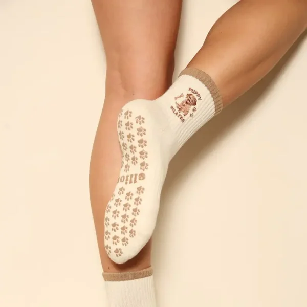 Maak kennis met onze paws-itively schattige Puppy Pilates gripsokken – een echte must-have voor elke hondenliefhebbende Pilates girlie!